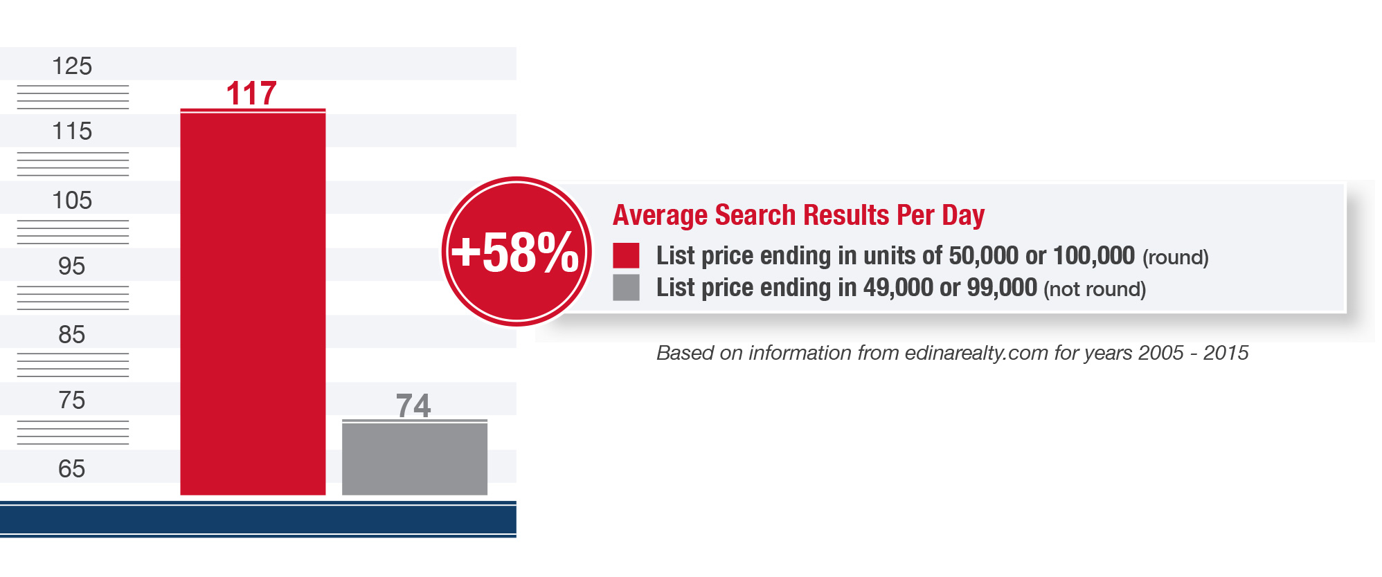 Your home appears in search results 58 percent more frequently when listing at a preferred round number price point.