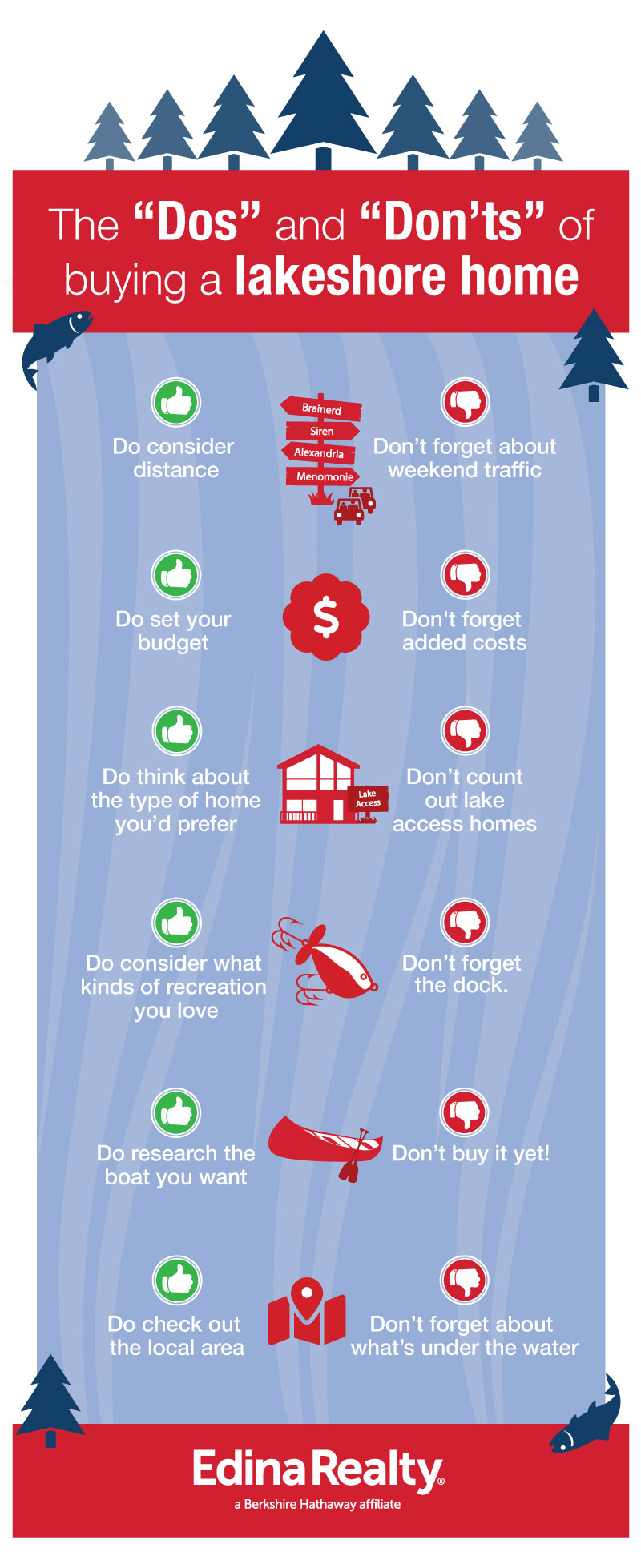 Do hire a lake home expert. Agents who specialize in lake homes and cabins offer an incredible wealth of local knowledge, especially in our neck of the woods. They understand everything from lake depth to winter road clearing to the building permits that some Minnesota and Wisconsin lakes have in place to limit development.