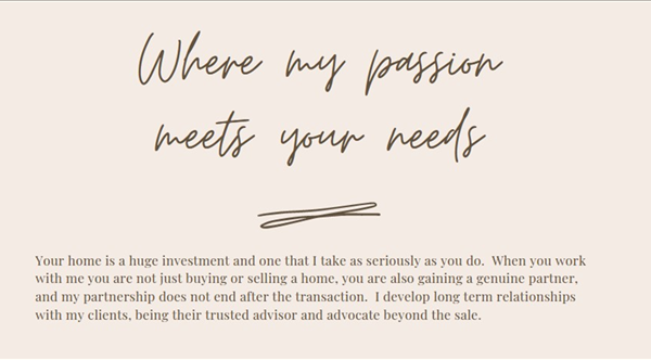 My creative passion for helping people make their house a home has carried over into my real estate career...
